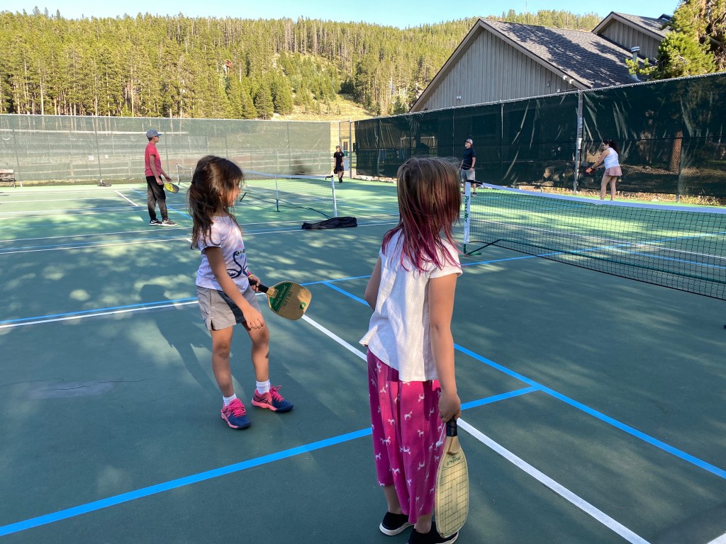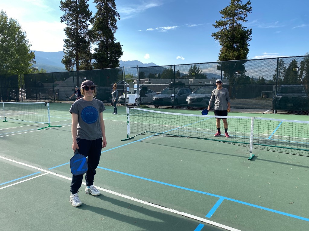 During the summer months in Summit County, you can play at Carter Park in Breckenridge, Rainbow Park in Silverthorne, Keystone Tennis Center, and Lake Dillon. When there are not scheduled sessions, it is similar to tennis on public courts – first come, first served. You’ll usually find the nets available in a case on the courts to set up and take down. It truly is a fantastic, fun multi-generational sport you can enjoy with friends and family of all ages!